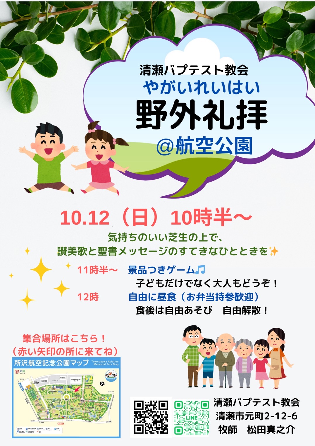 清瀬バプテスト教会では、毎年航空公園にて野外礼拝を実施しています。