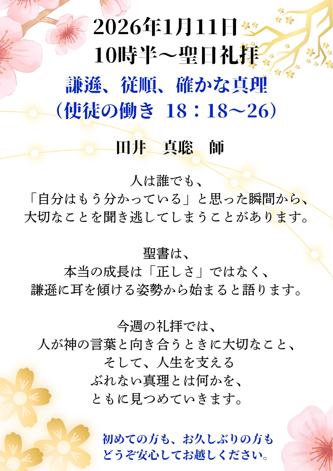 メッセージ 「謙遜、従順、確かな真理」 田井 真聡 師
