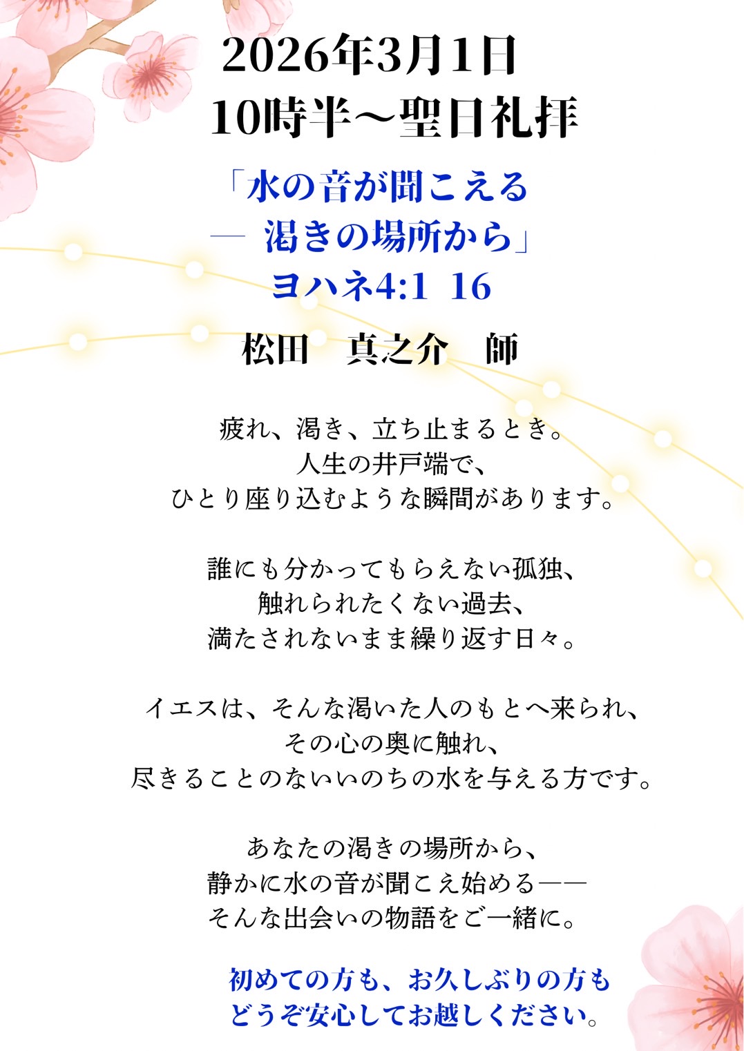 メッセージ 「水の音が聞こえるー渇きの場所から」 松田 真之介 師