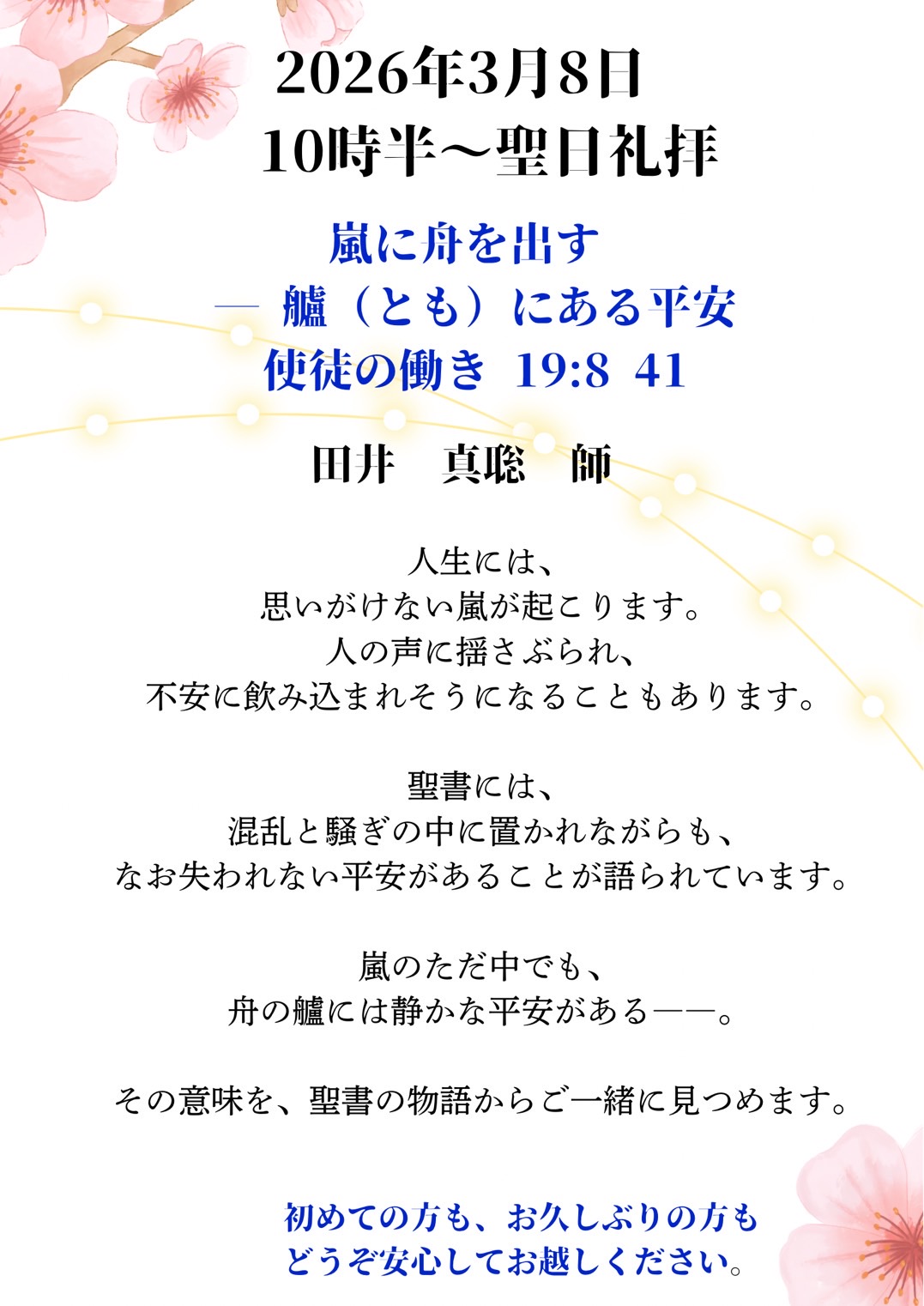 メッセージ 「嵐に舟を出すー艫(とも)にある不安」 田井 真聡 師