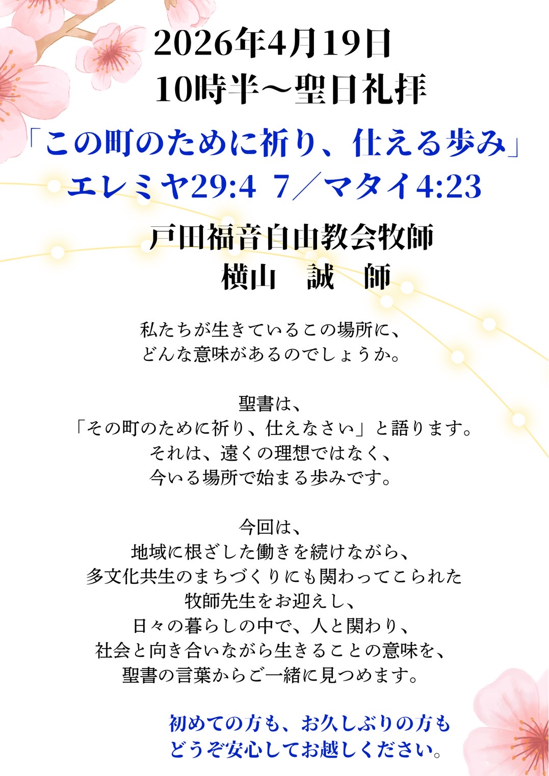 メッセージ 「この町のために祈り、仕える歩み」 横山 誠 師